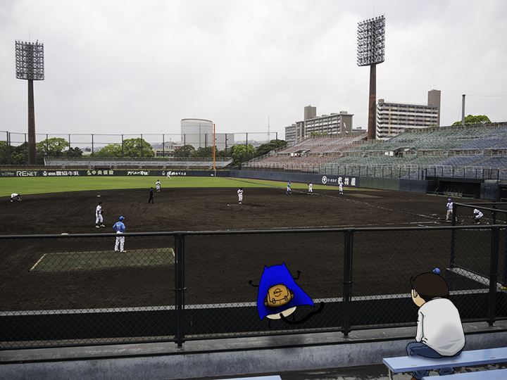 先だって『福岡ソフトバンクホークスvs北海道日本ハムファイターズ』のプロ野球公式戦も行われたという、国際規格にも準ずる鹿児島きっての野球場です。立派過ぎて思わず観客席への入り口を見失う始末です。